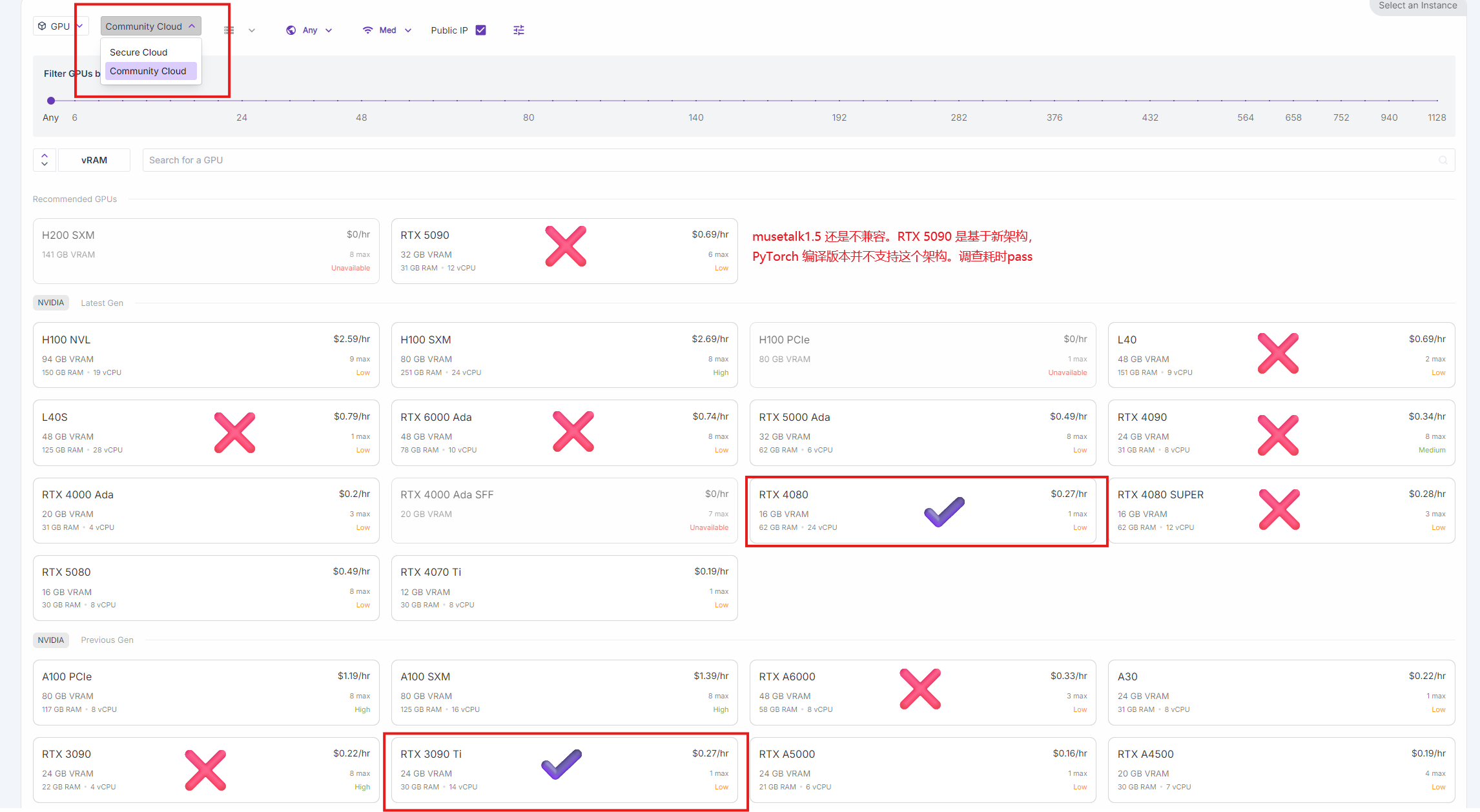 GPU选型和算力分离:将全部逻辑业务和生成视频需要使用的GPU算力服务完全分离,为租赁GPU算力适配高并发的弹性变化奠定基础。并了解GPU的各种性能,不断尝试性价比最高,且可行的GPU型号。