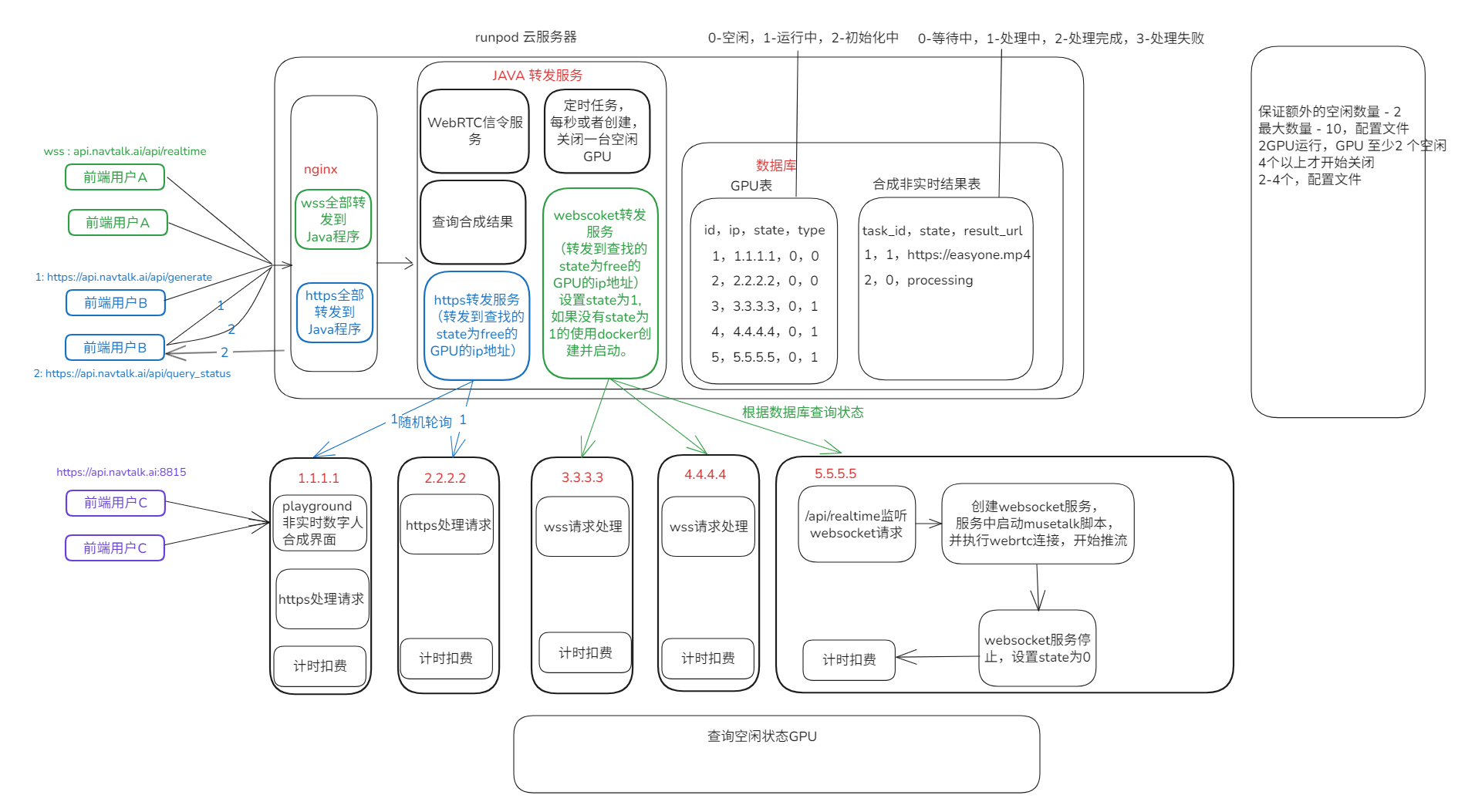 负载均衡:构建中转服务,对于实时和非实时的处理,查询空闲GPU状态。